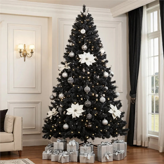 Clear Prelit Incandescent Black Hinged Spruce Artificial Christmas Tree, 7.5'